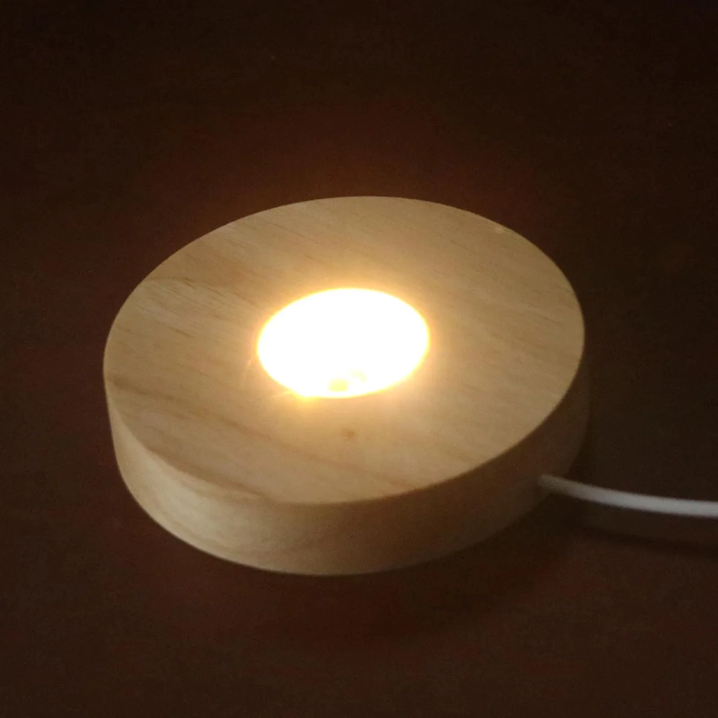 La base de madera redonda con luz LED es el accesorio ideal para realzar tus piezas decorativas, manualidades o creaciones artesanales. Su diseño elegante y natural aporta calidez, mientras la iluminación LED integrada resalta los detalles y colores de los objetos que coloques sobre ella.