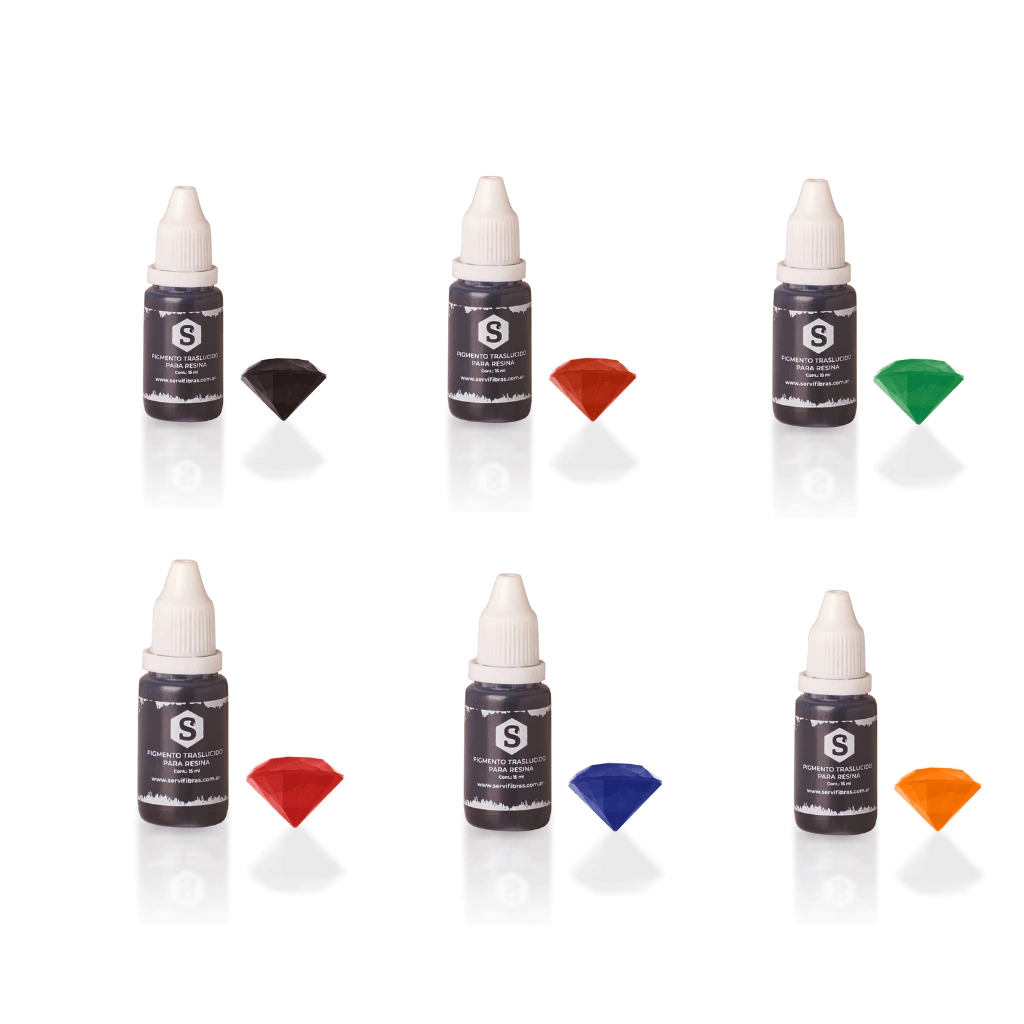 Pigmentos Servifibras traslúcidos para resina. Incluye: 6 pigmentos traslúcidos para resina poliester.
