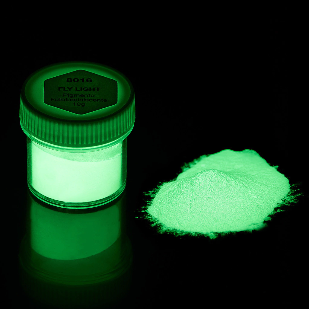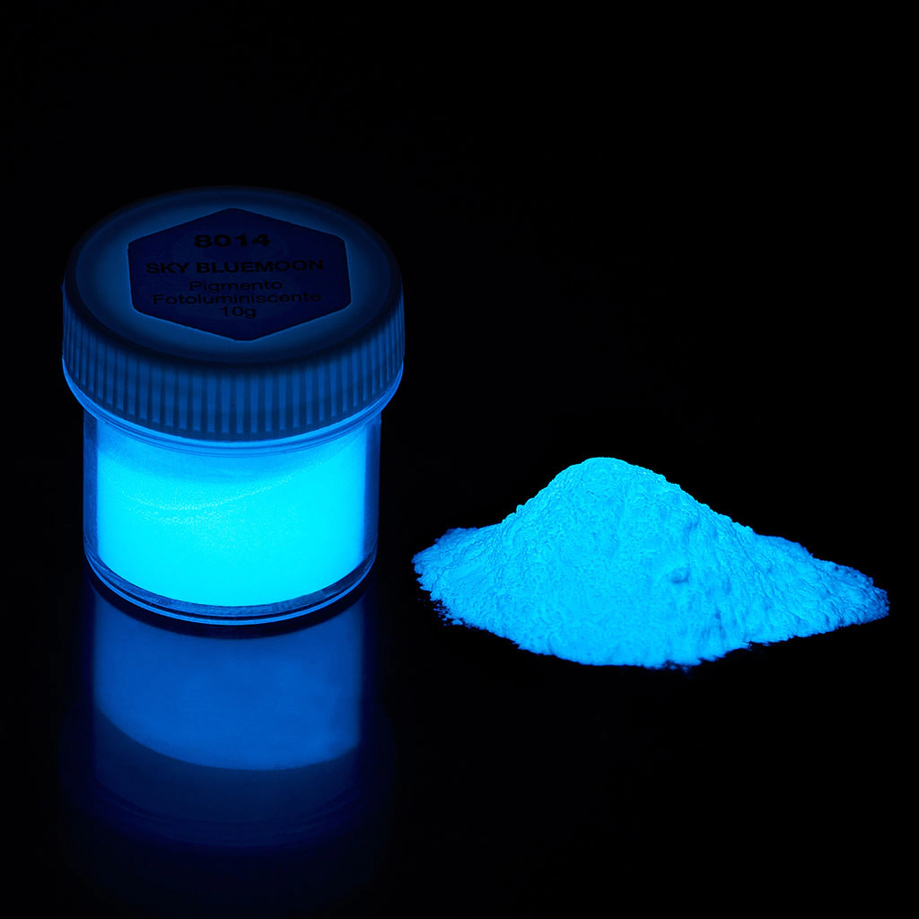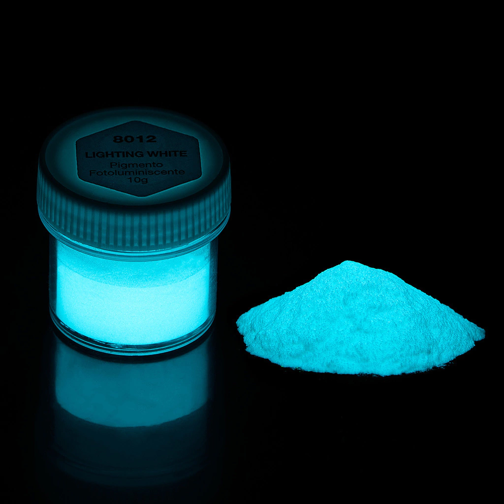 Los pigmentos fotoluminiscentes cargan con luz artificial o luz UV(la carga siempre es más rápida con luz UV). Una vez que oscurece su entorno, emiten luz por su propia carga.