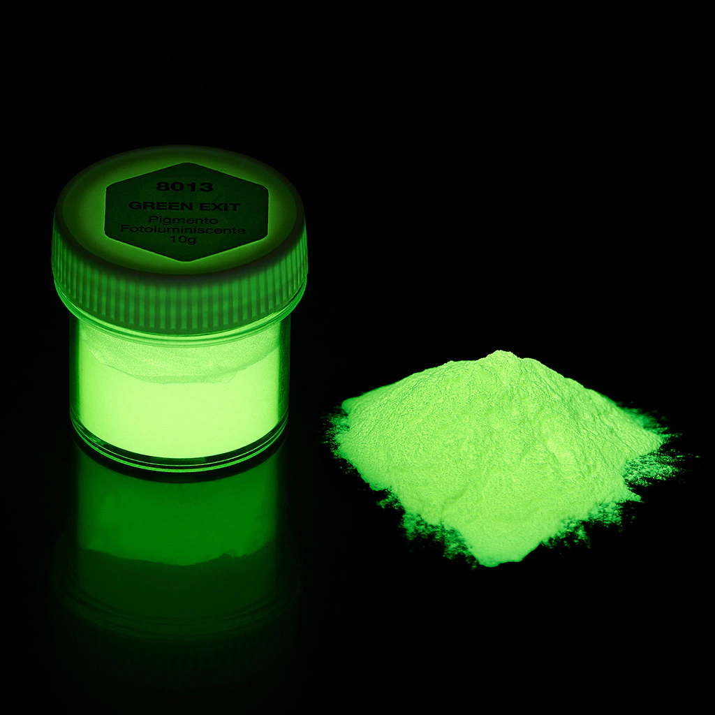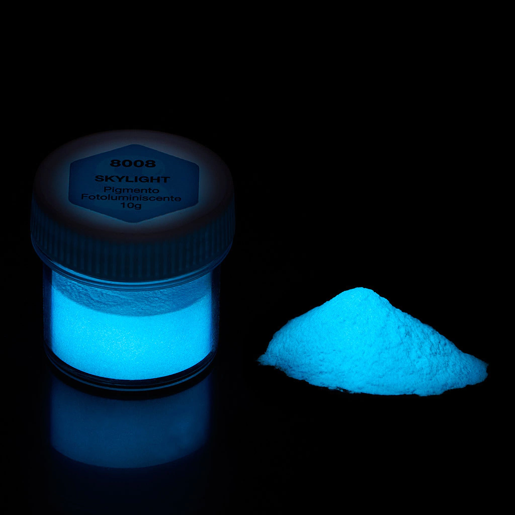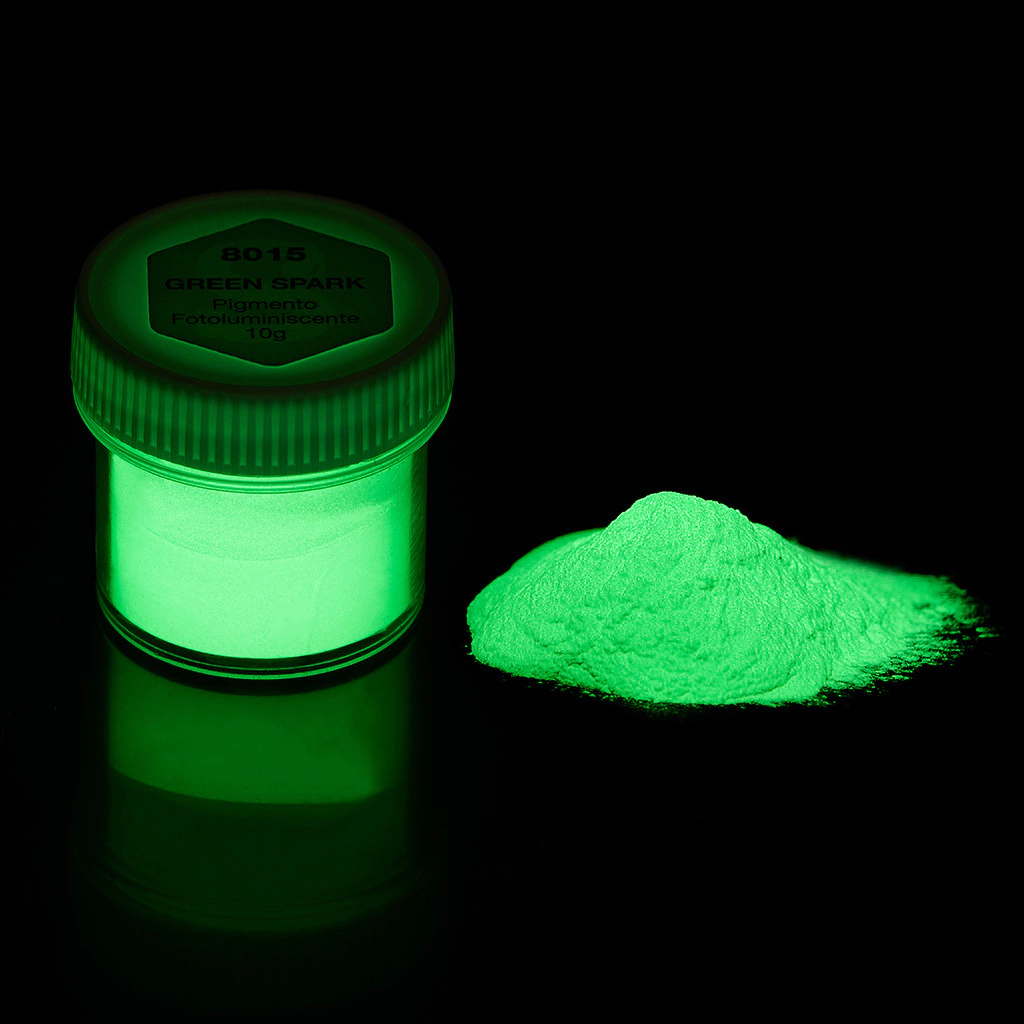 Los pigmentos fotoluminiscentes cargan con luz artificial o luz UV(la carga siempre es más rápida con luz UV). Una vez que oscurece su entorno, emiten luz por su propia carga.